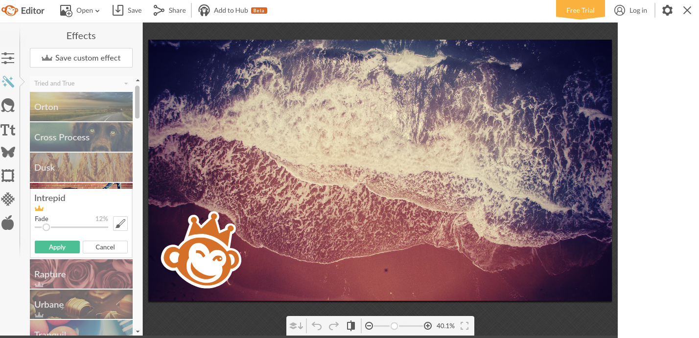 PicMonkey is more geared towards photo editing than just design alone. The only downside to PicMonkey is that it requires a paid membership to get access to some of its more powerful features. However, the free version offers great essential photo editing tools for cropping, resizing, overlaying, making color adjustments, or removing blemishes.