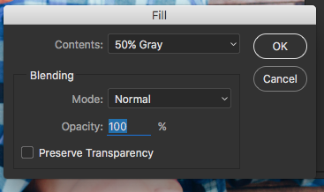 2. Go to Edit > Fill > Set Contents to 50% Gray > Click Okay