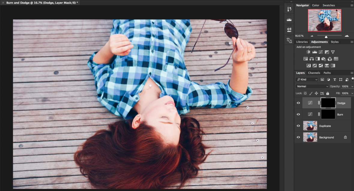 Burning and dodging photographs originate from the darkroom photography practice of exposing certain areas of a print to light more or less than the other to enhance the darkness or lightness of an image. Burning makes specific areas of the image darker while dodging makes parts of the image lighter. This is a great way to create vignettes around an image.